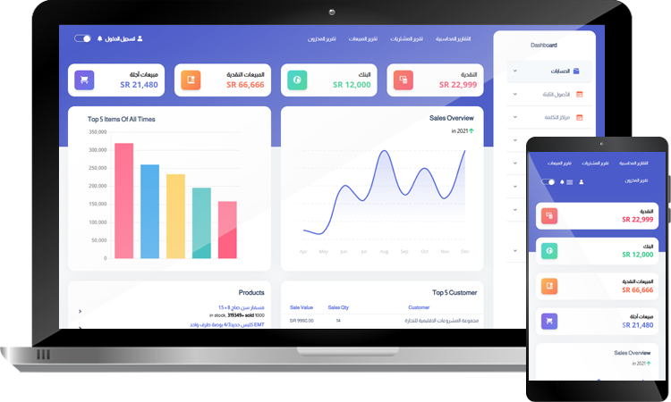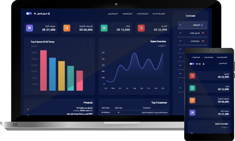 راقب أداء مبيعاتك وحساباتك من أي مكان وفي أي وقتيدعم الفاتورة الإلكترونية